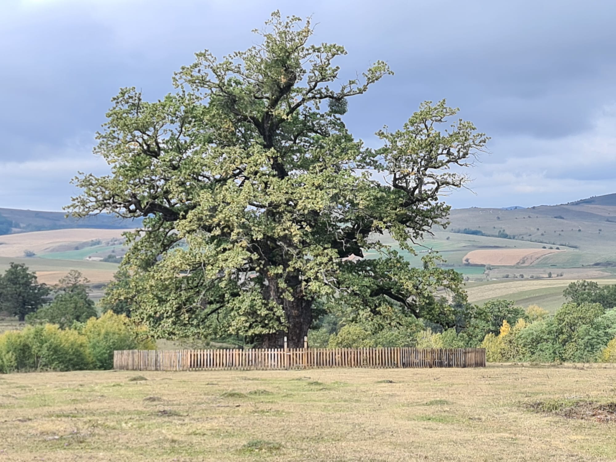 Known as "Bătrânul Carpaților" (The Old Man of the Carpathians), this is a massive, almost one thousand year old Pedunculate Oak (Quercus robur), famous as one of the country's oldest trees, with a huge trunk (apprx. 9.3m circumference), impressive height (over 23m), and historical significance.